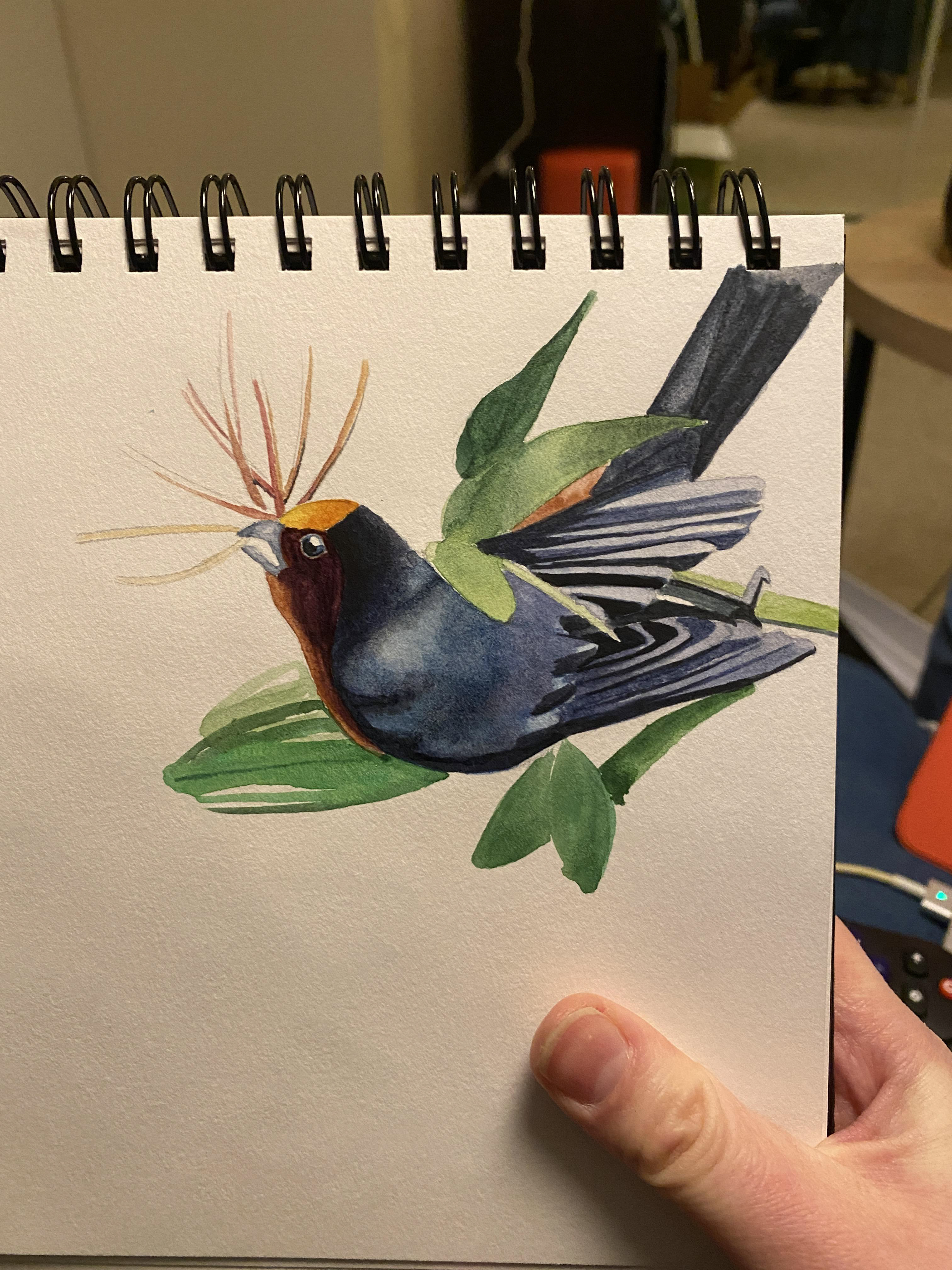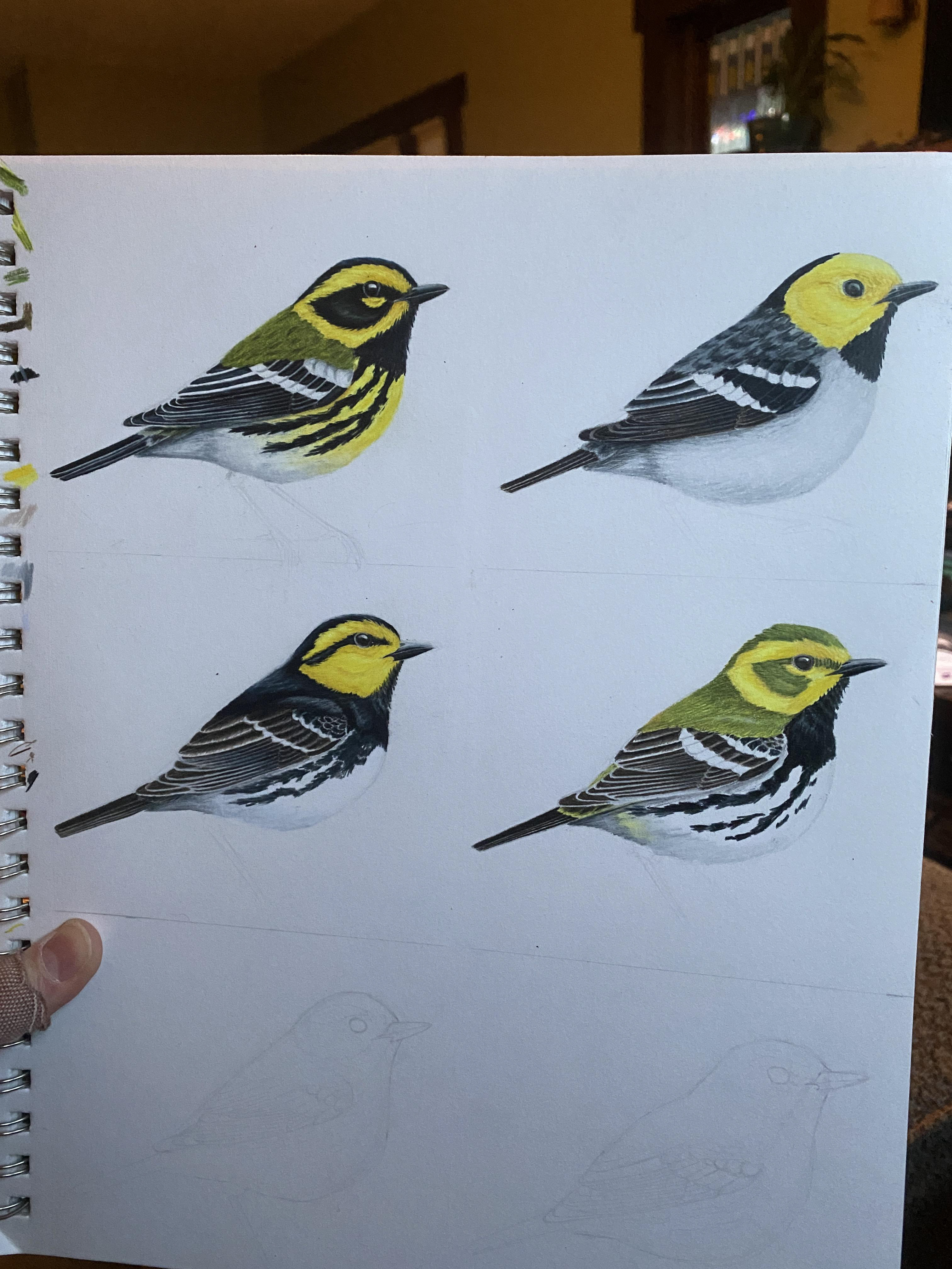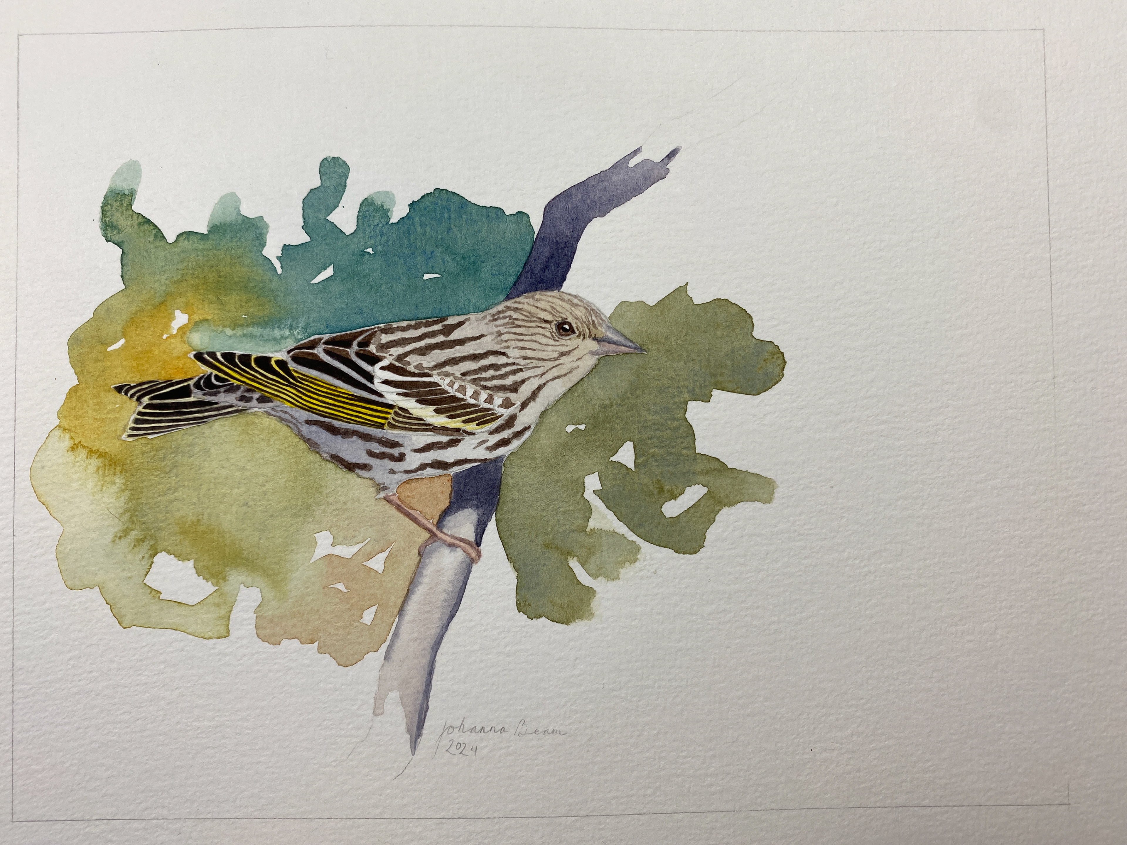 Yellow-rumped Warbler (Setophaga cornata) in watercolor and ink.