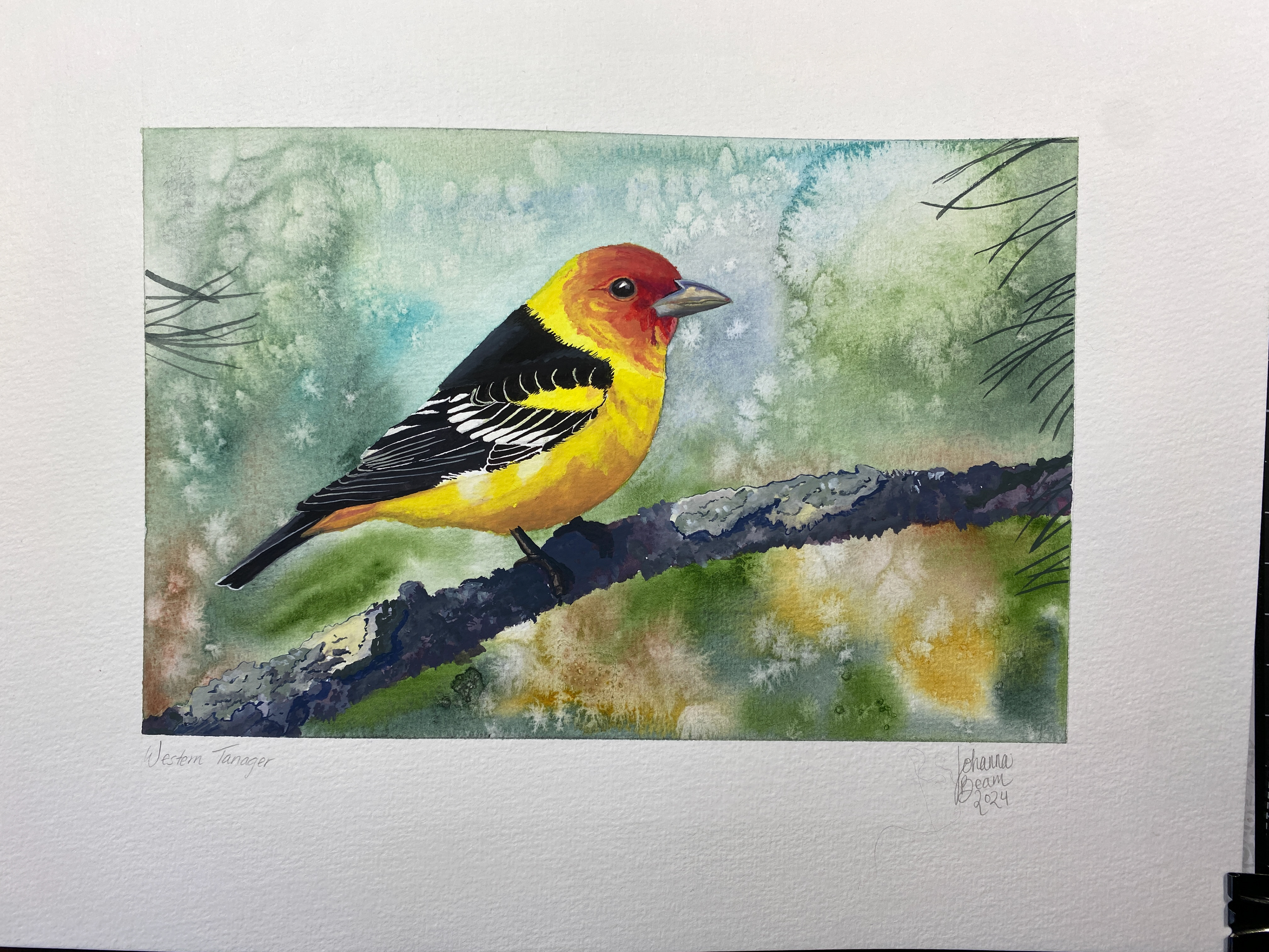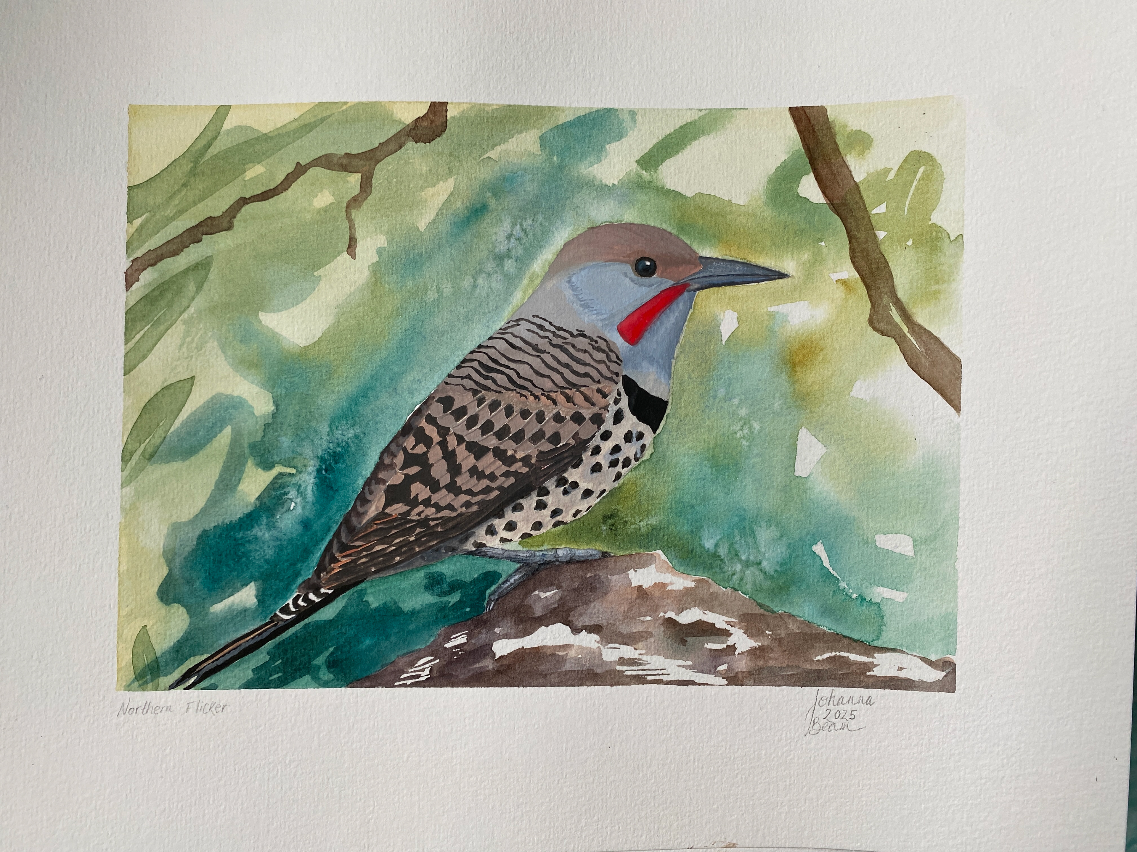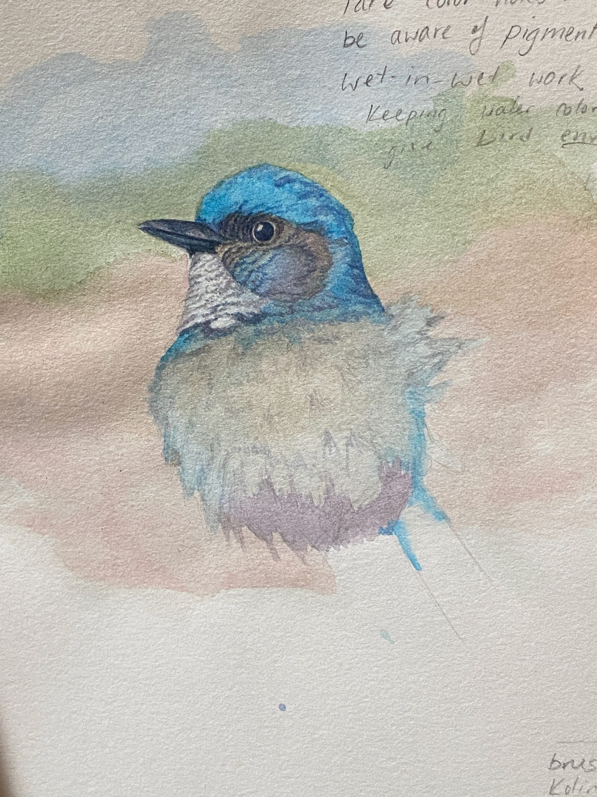 Yellow-rumped Warbler (Setophaga cornata) in watercolor and ink.